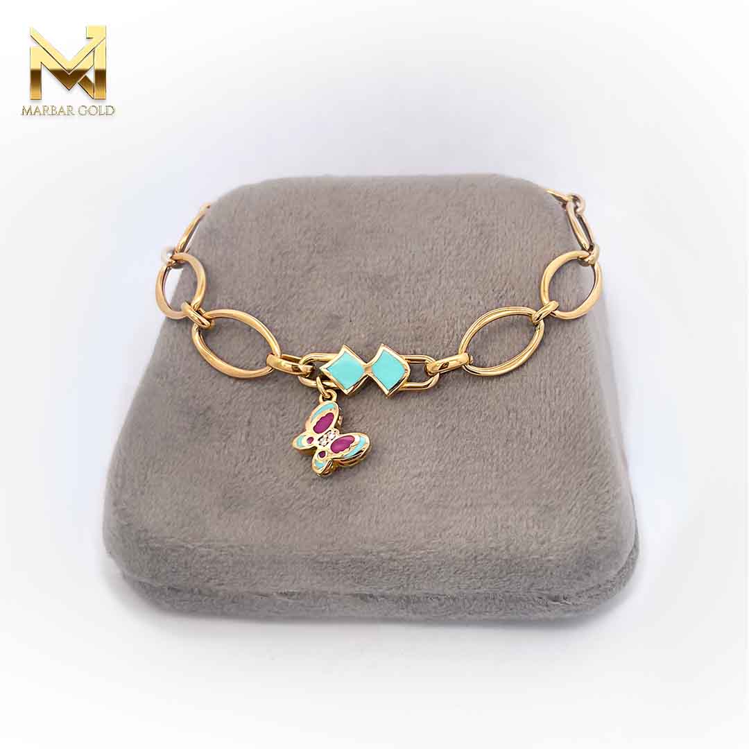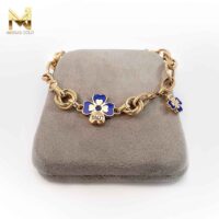 دستبند اکسلنت با نمای بسیار عالی و ظرافت در ساخت همراه با تلفیق طلا و مینا جلوه ای خاص به اثر بخشیده و سبکی مدرن را عرضه کرده است.